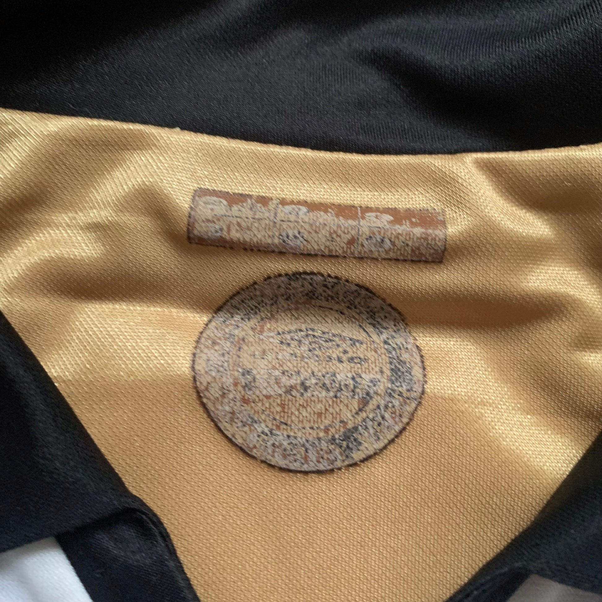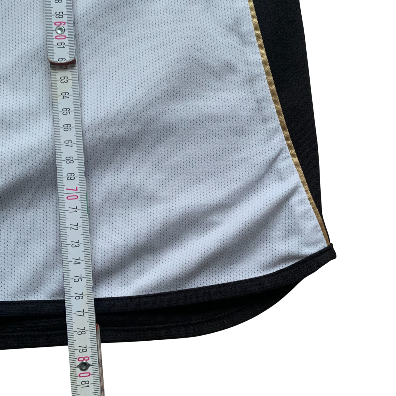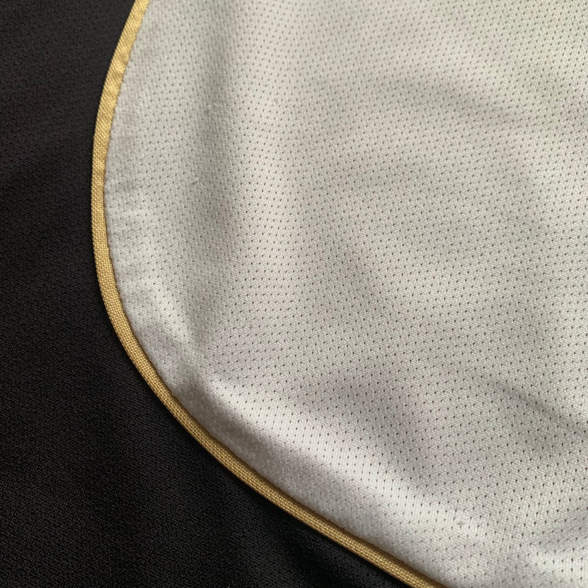 goldene Seite des Trikots ist verwaschen und hat Fadenzieher